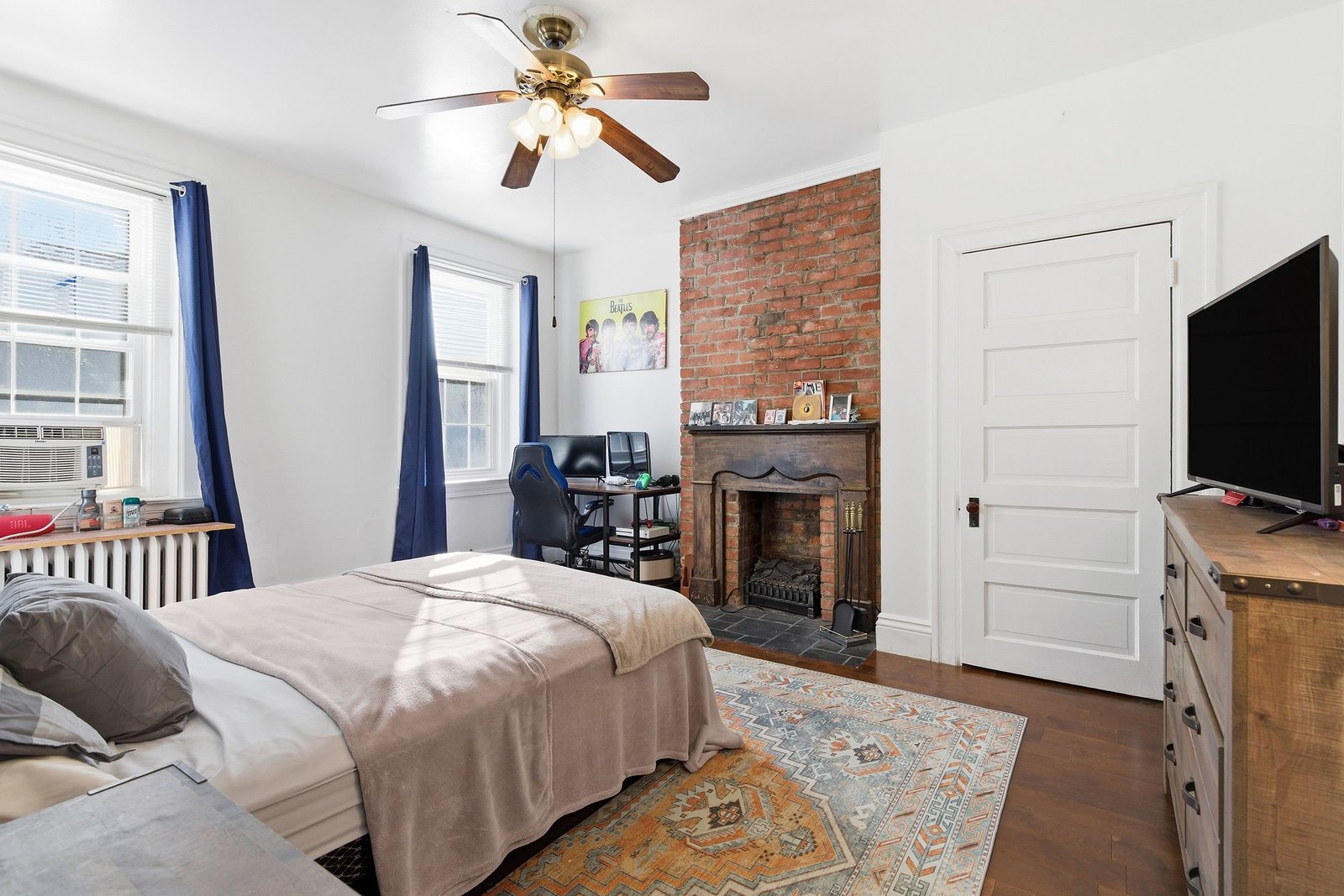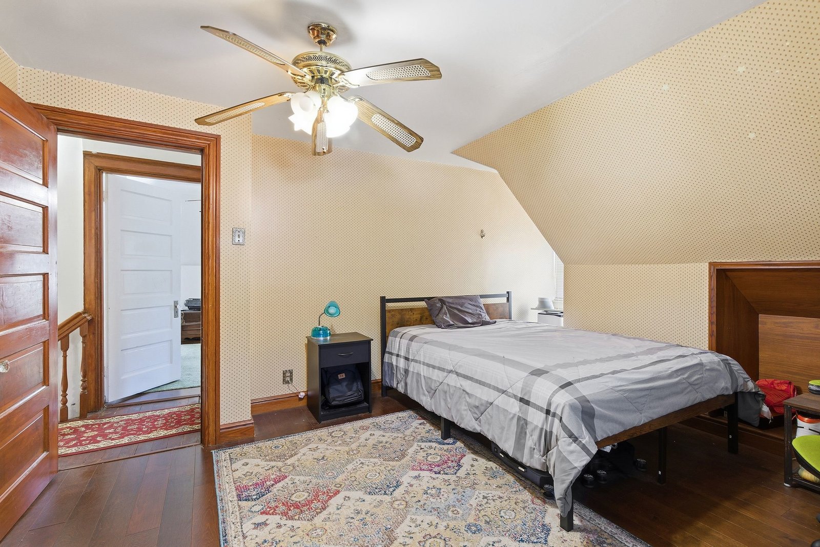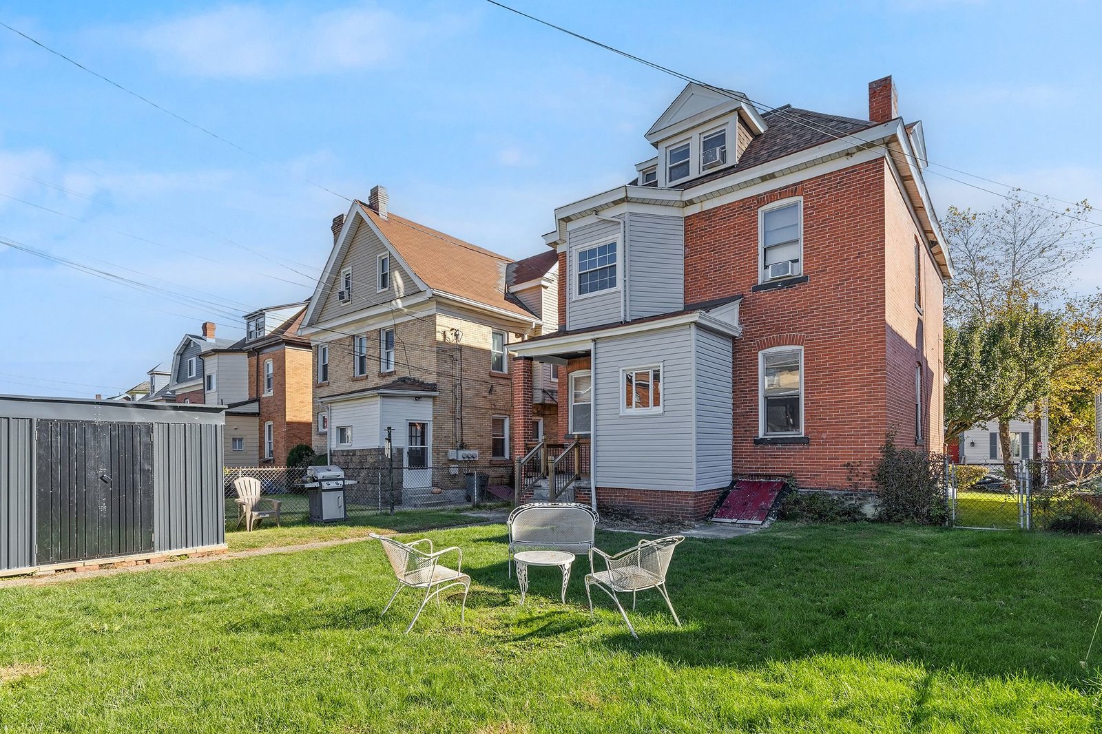 Stately Morningside residence offers six beds and three full baths — each of its 2,200 square feet adorned with preserved architectural detailing. An outstanding opportunity for visionary city buyers seeking space, flexibility, and history. The all-brick home on a quiet corner of Chislett Street welcomes you with a grand, three-columned porch. The vestibule and foyer feature original mosaic floor tile, stained-glass windows, and a showstopping wood-paneled staircase. The living and dining rooms boast a fireplace feature wall and access to the main-floor full bath, while the adjoining kitchen opens to a rear porch and table-top yard. Four private bedrooms and a full hall bath on the second floor offer options for flexible living or renovation, with bedrooms five and six on the top floor completing the layout. A partially finished basement includes laundry and a third full bath. The fully fenced yard abutting Swan Way presents an option for future off-street parking.